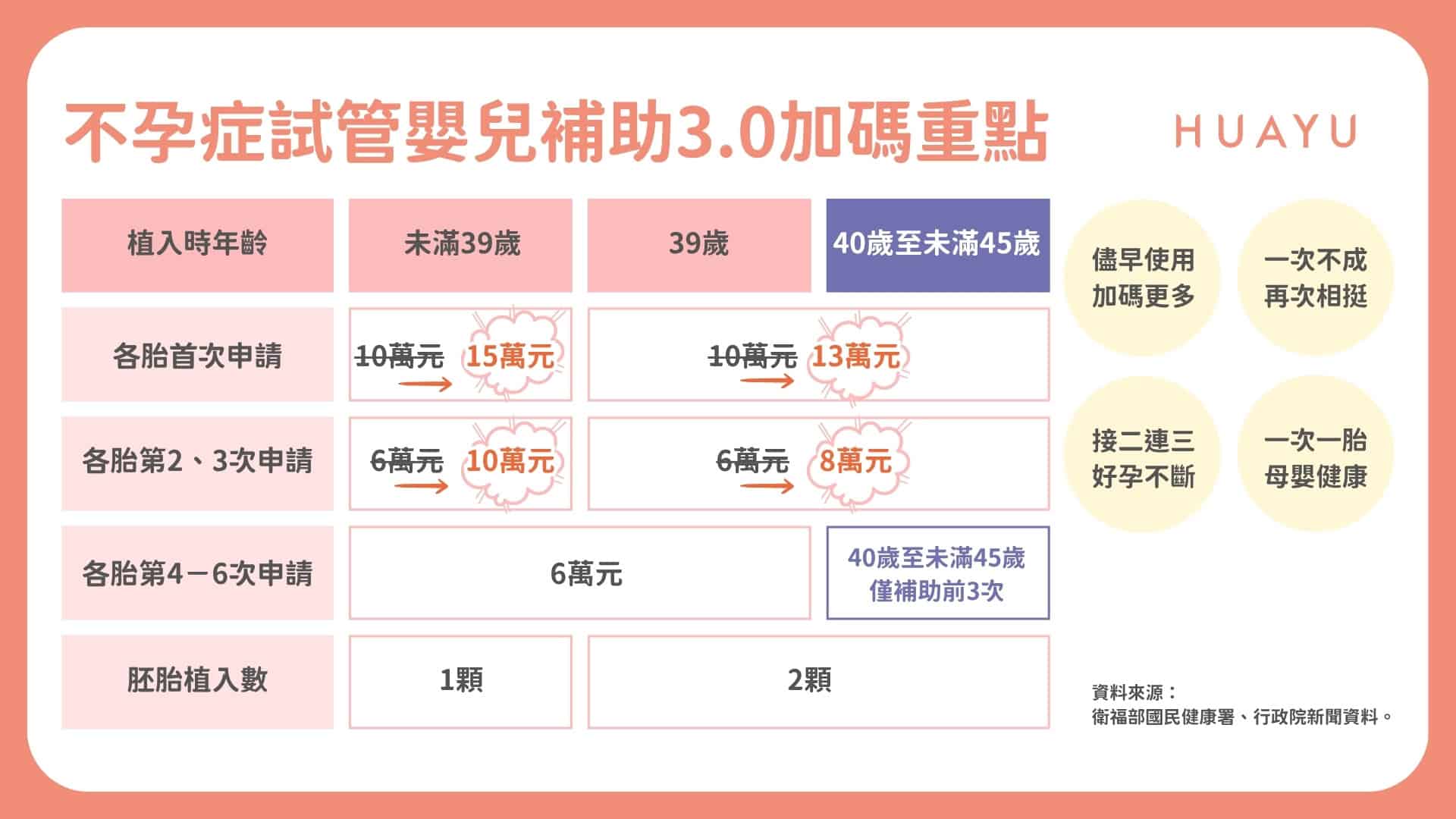 39~未滿 45 歲 → 每胎最多補助 3 次