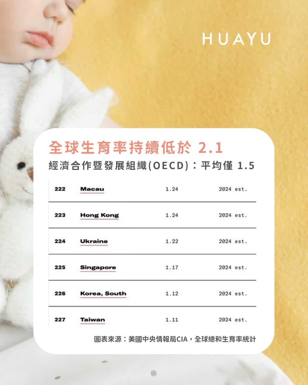 資料來源:OECD 2024、CIA The World Factbook 2024、UN DESA World Fertility Report 2024。